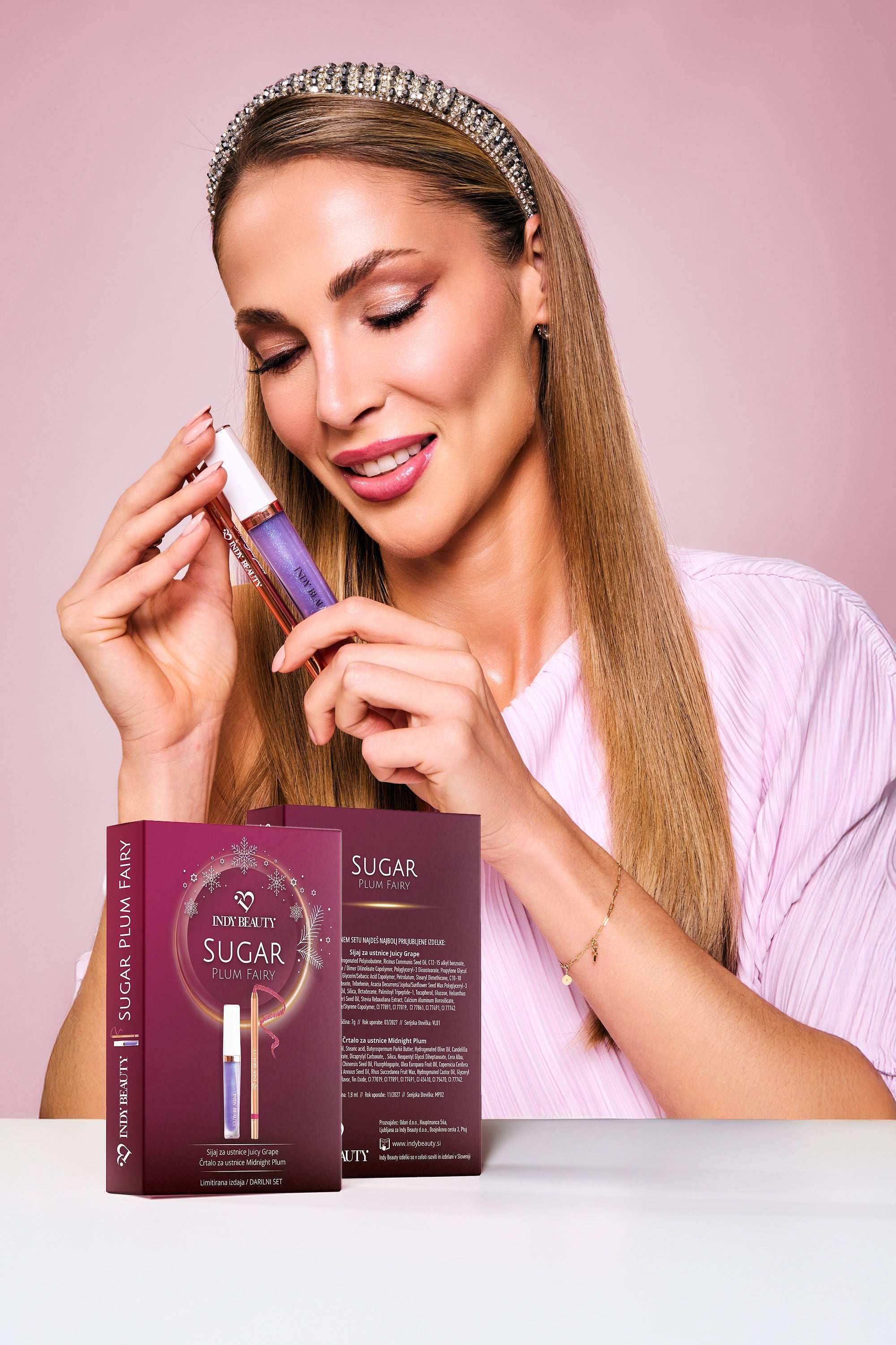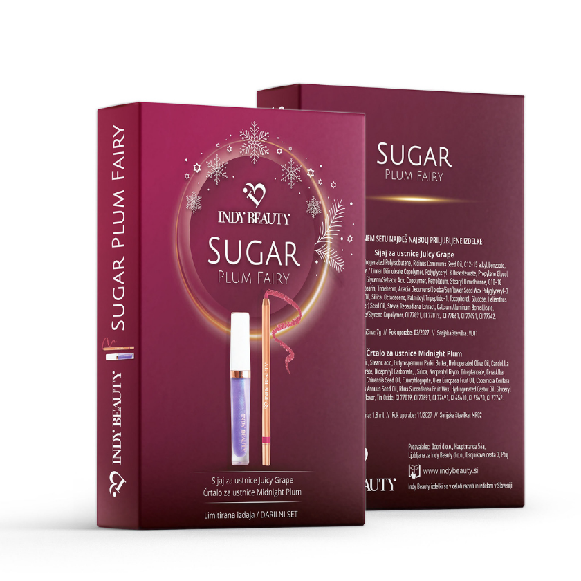 Darilni set Sugar Plum Fairy združuje popoln praznični duo: sijaj za ustnice Juicy Grape in črtalo za ustnice Midnight Plum – vse, kar potrebuješ za zapeljive, definirane in božične pravljice vredne ustnice.